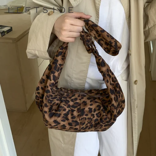 LEFTSIDE Design Suede High Capacity Leopard Shoulder Bags for Women 2025 New Winter Underarm Bag Females Luxury Handbags