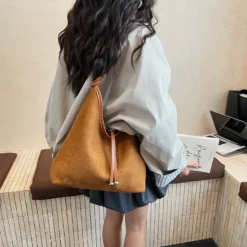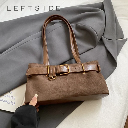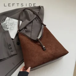 LEFTSIDE Women High Capacity Soft Suede Shoulder Bag 2025 Winter New Fashion Retro Underarm Bag Luxury Brand Designer Handbags