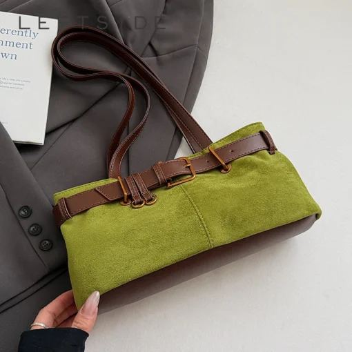LEFTSIDE Women Faux Suede Shoulder Bag 2025 Winter Retro Soft Underarm Bag Luxury Designer New Trend Female Handbags and Purses
