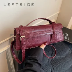 LEFTSIDE 2025 New Luxury Small PU Leather Stone Pattern Handbags and Purses Women Flap Crossbody Bag Short Handle Shoulder Bags