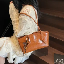 LEFTSIDE Women Vintage PU Leather Tote Bag 2025 Winter New Retro Underarm Shoulder Bag Luxury Designer Handbags and Purses