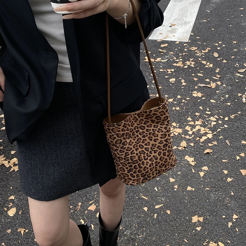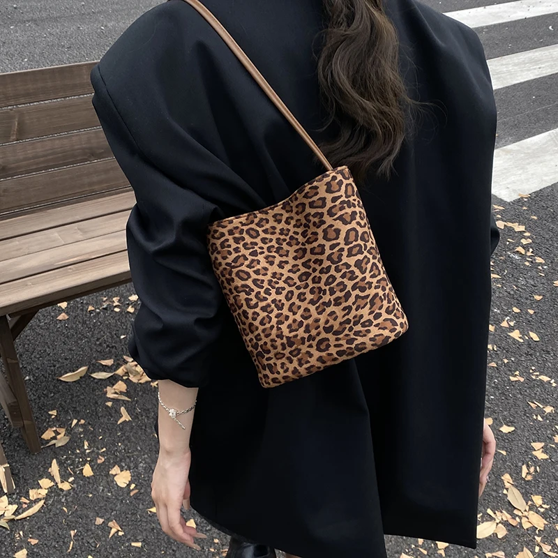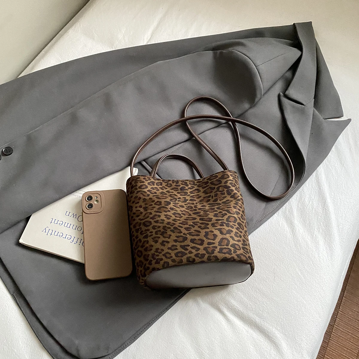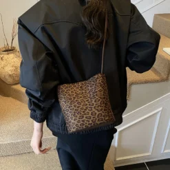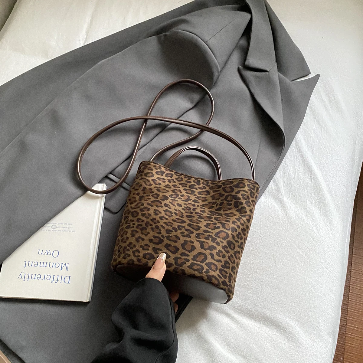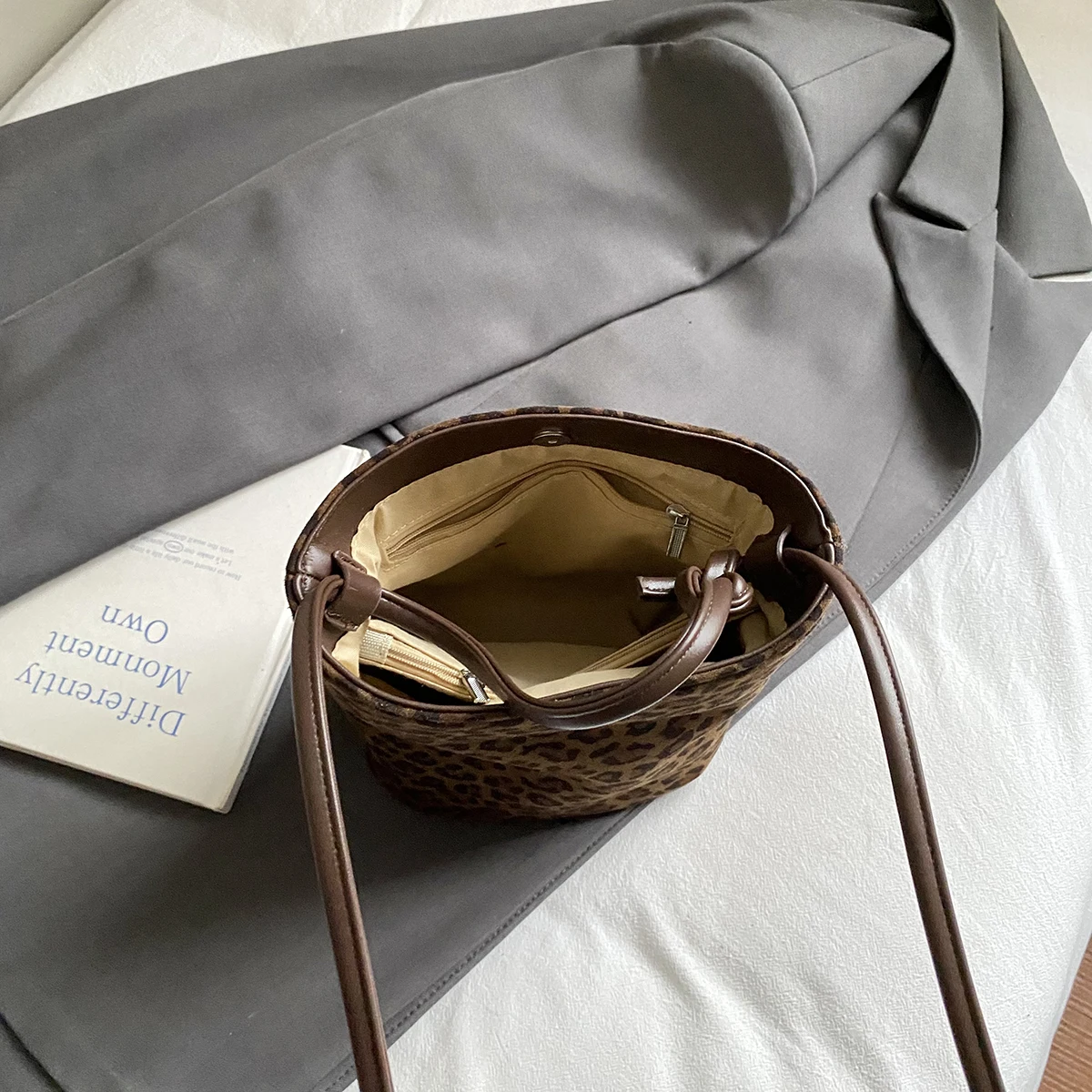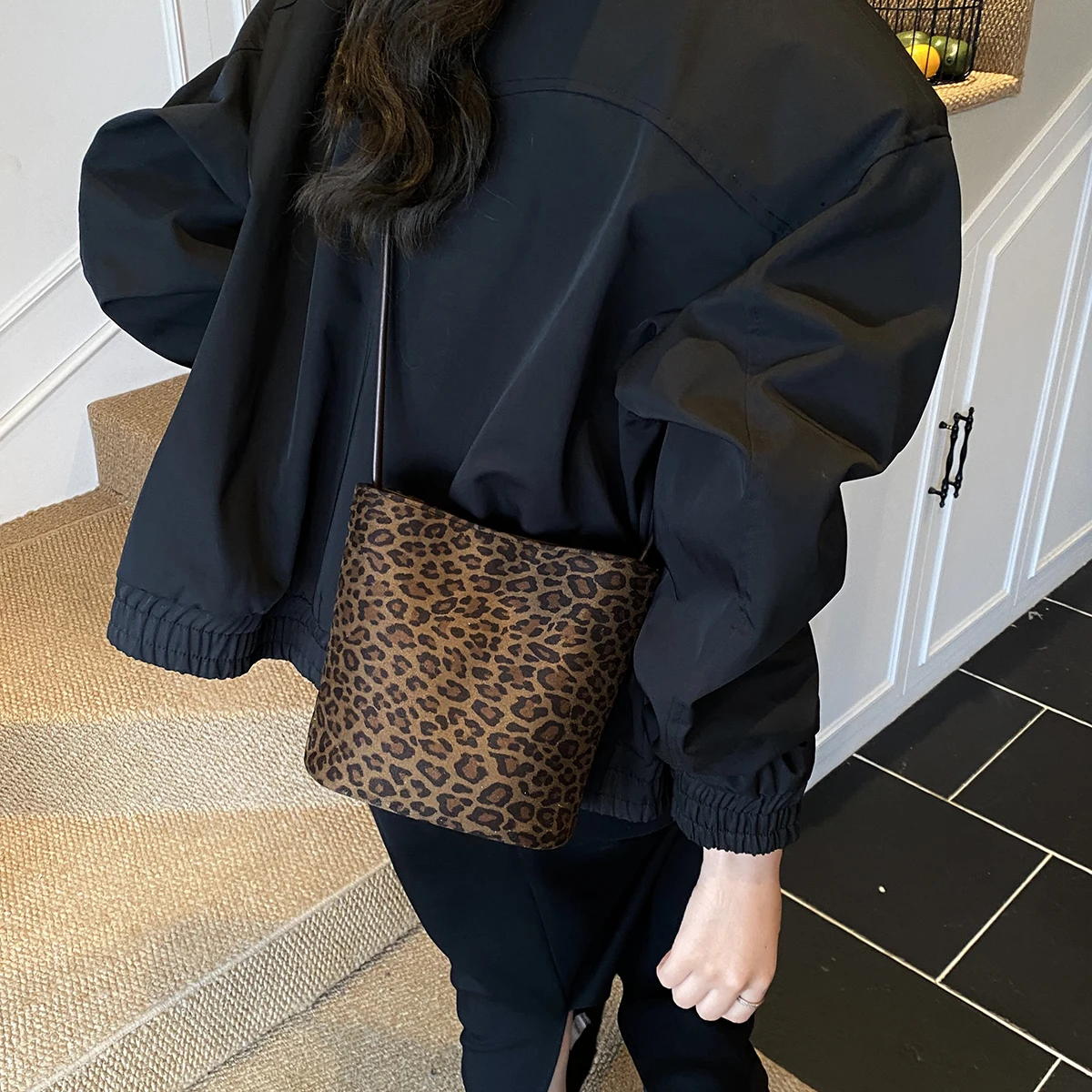 LEFTSIDE Design PU suede Leopard Shoulder Bags for Women 2025 New Winter Crossbody Bag Females ​Luxury Handbags and Purses