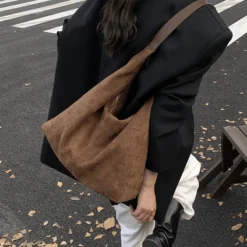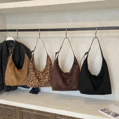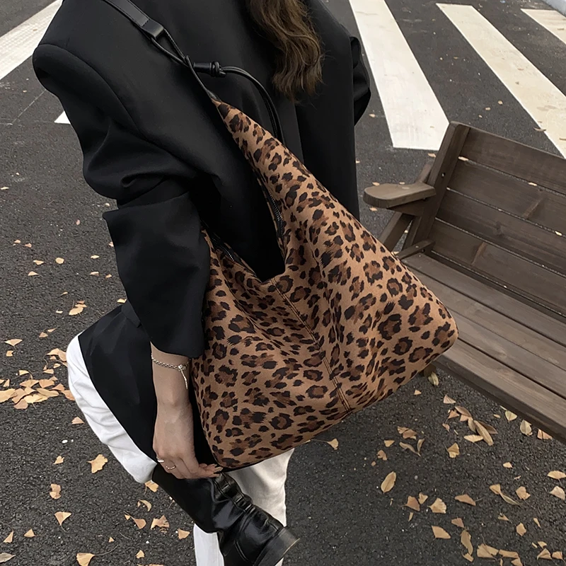 LEFTSIDE Design Suede High Capacity Leopard Shoulder Bags for Women 2025 New Winter Underarm Bag Females ​Luxury Handbags
