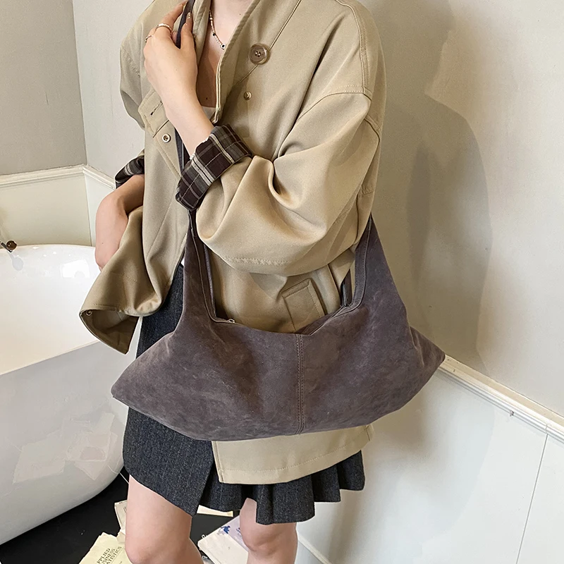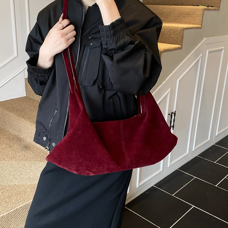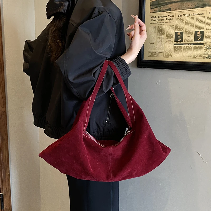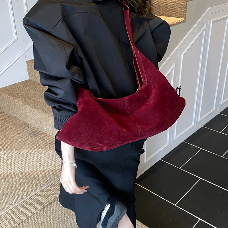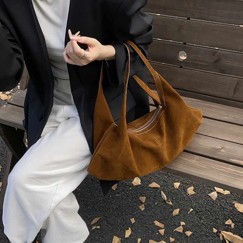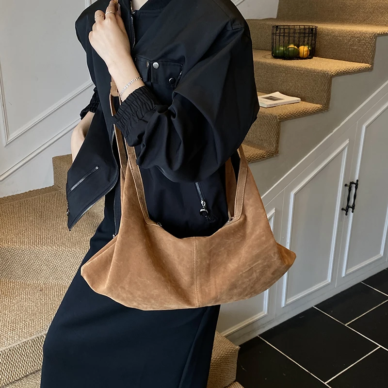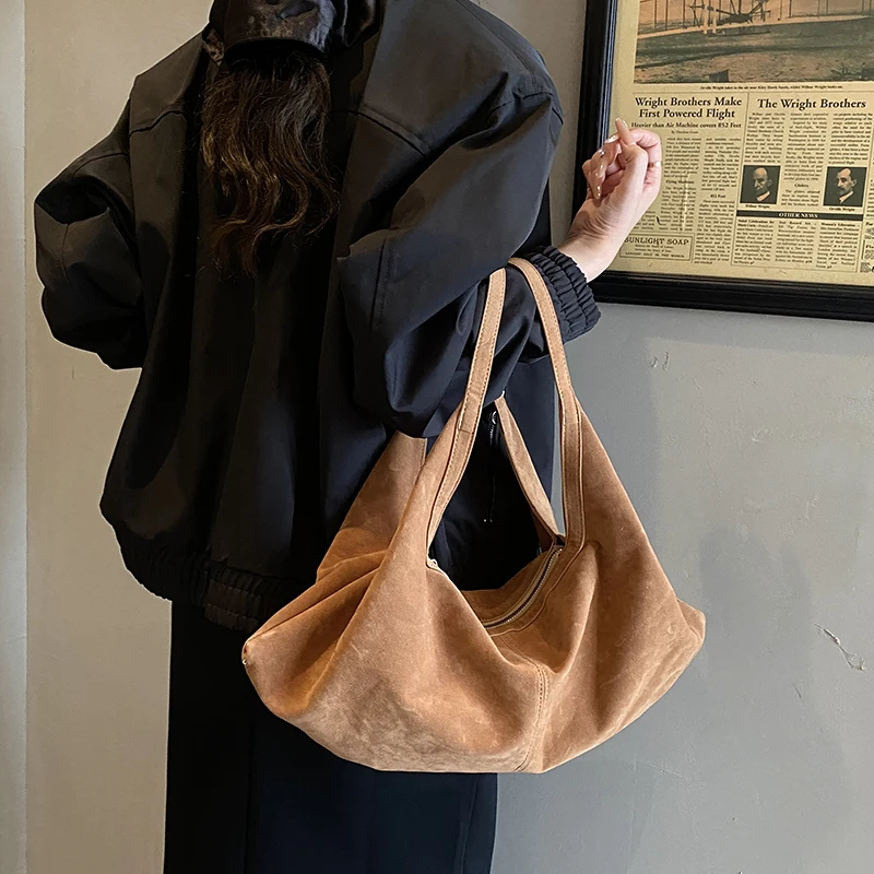 LEFTSIDE Women High Capacity Soft Suede Shoulder Bag 2025 Winter New Fashion Retro Underarm Bag Luxury Brand Designer Handbags