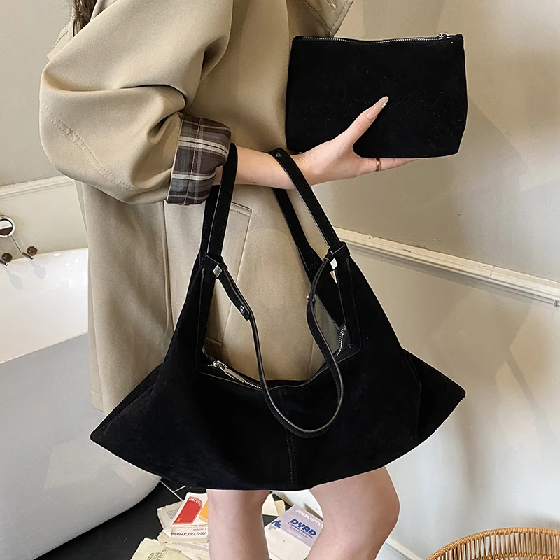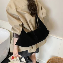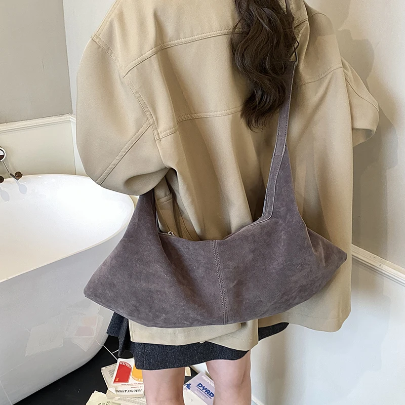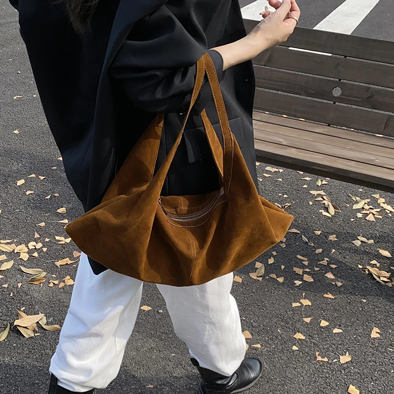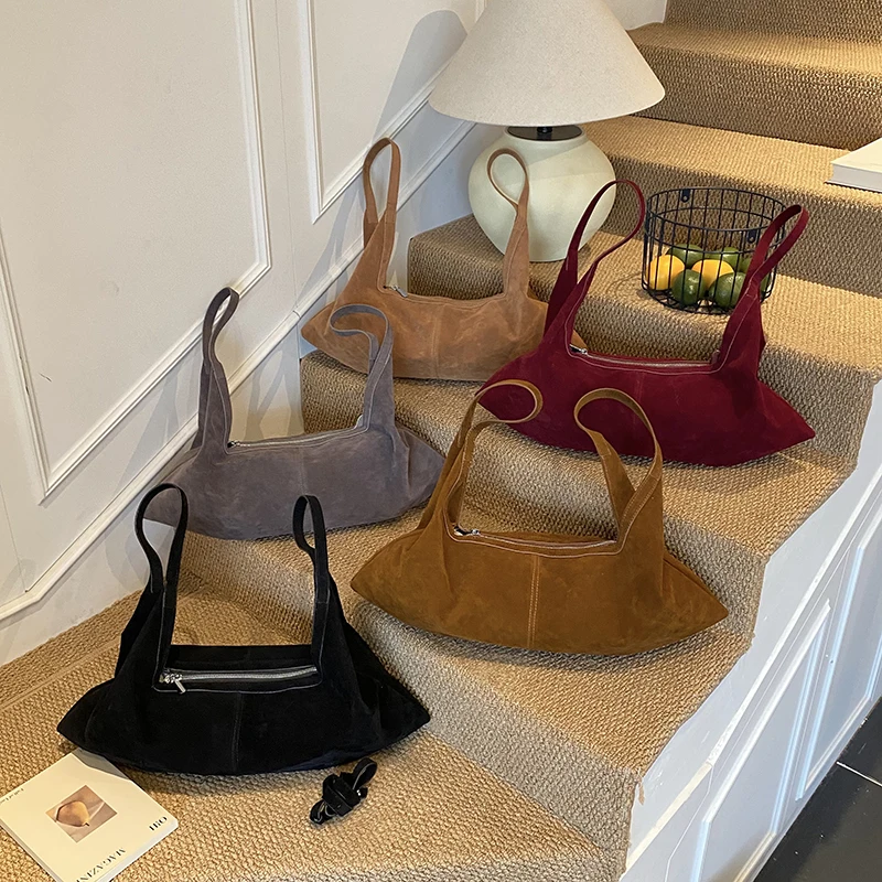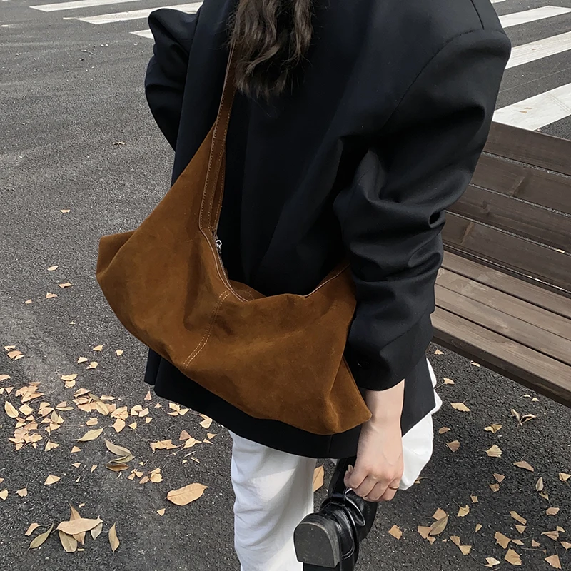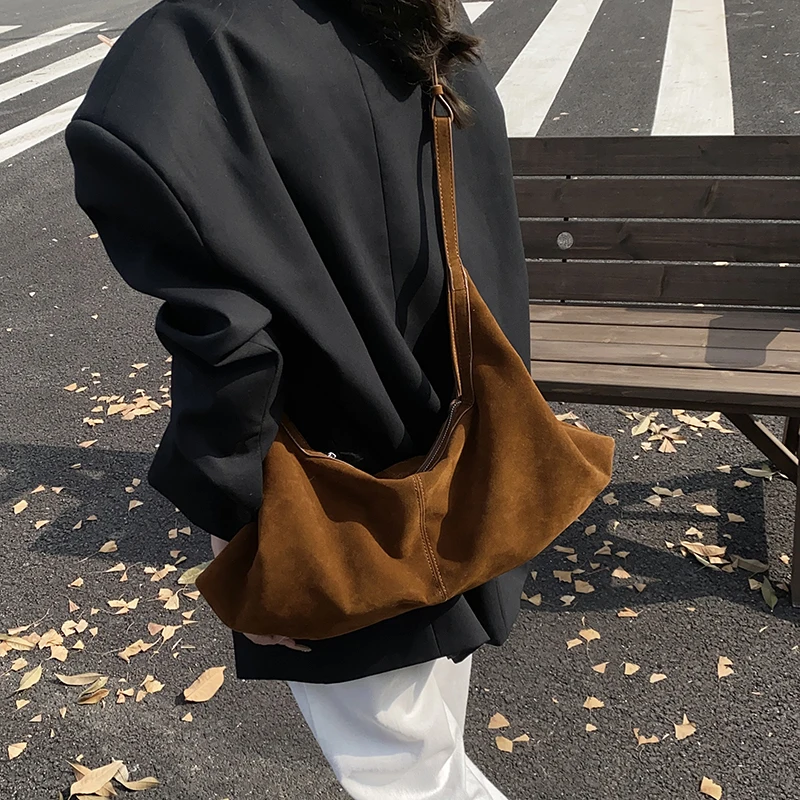 LEFTSIDE Women High Capacity Soft Suede Shoulder Bag 2025 Winter New Fashion Retro Underarm Bag Luxury Brand Designer Handbags