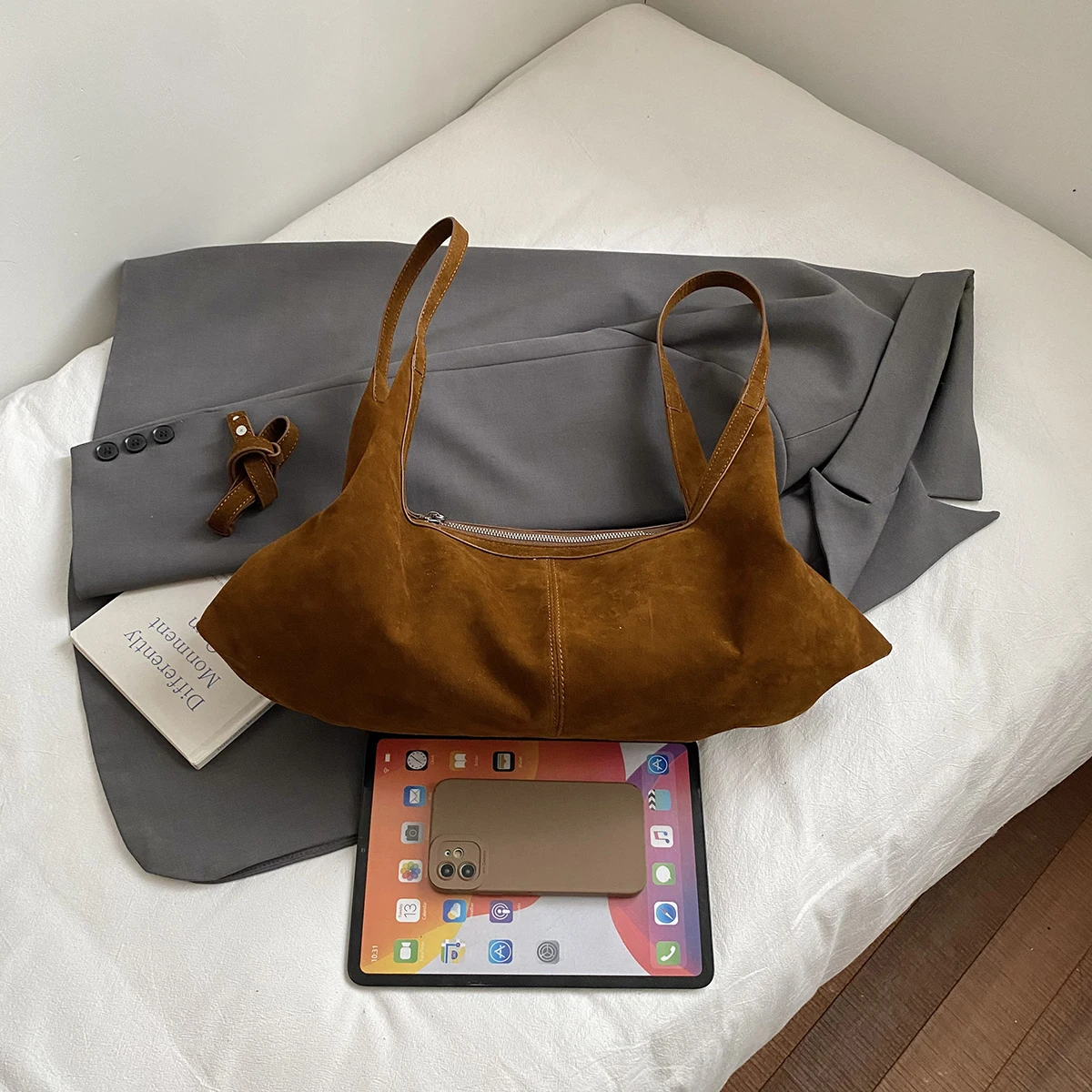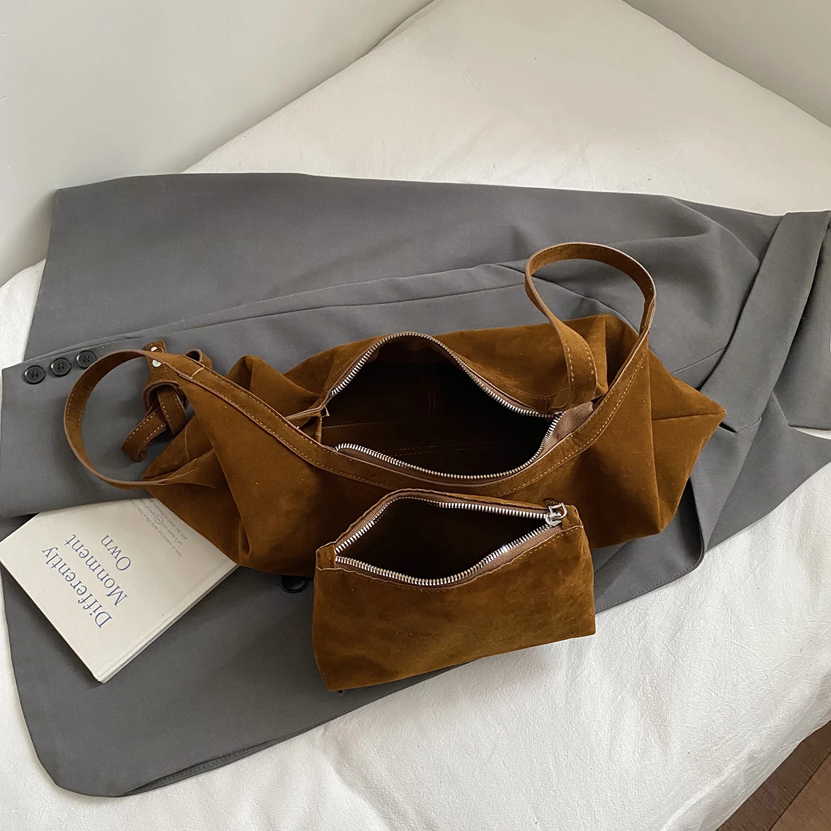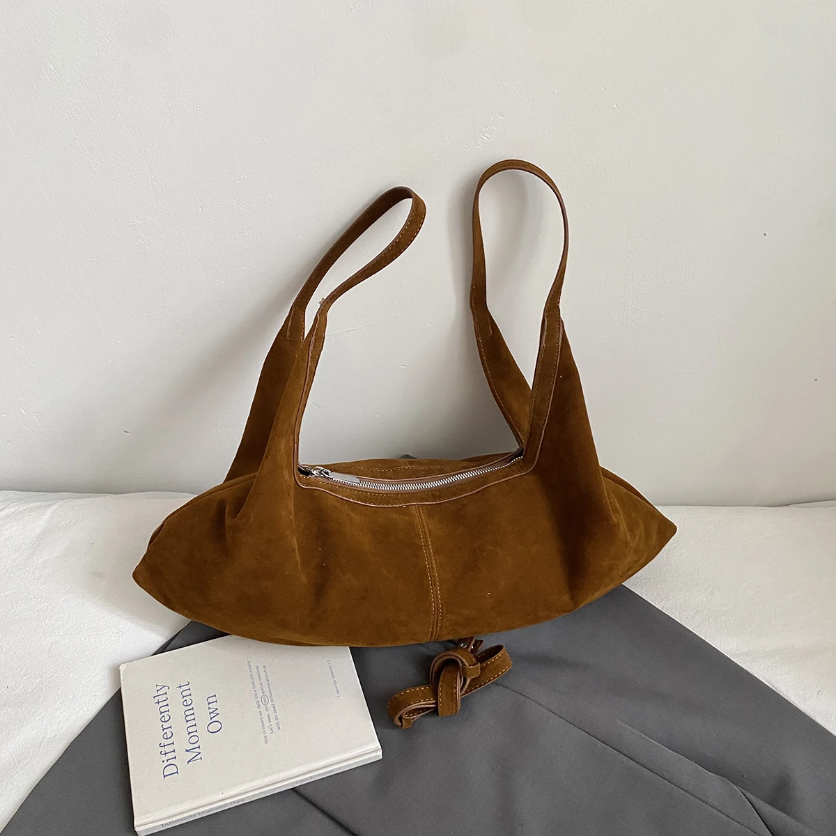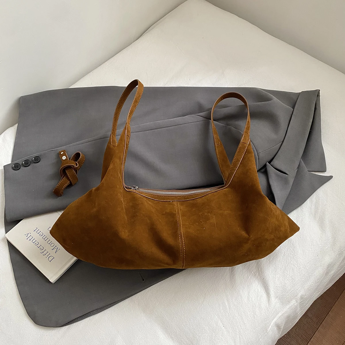 LEFTSIDE Women High Capacity Soft Suede Shoulder Bag 2025 Winter New Fashion Retro Underarm Bag Luxury Brand Designer Handbags